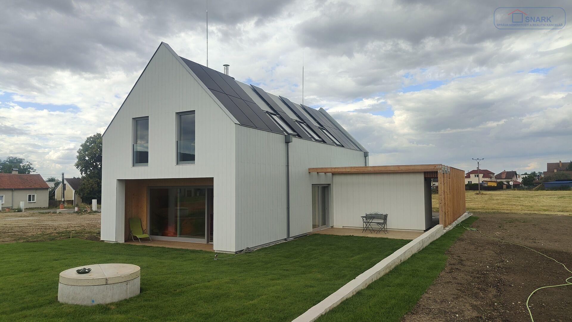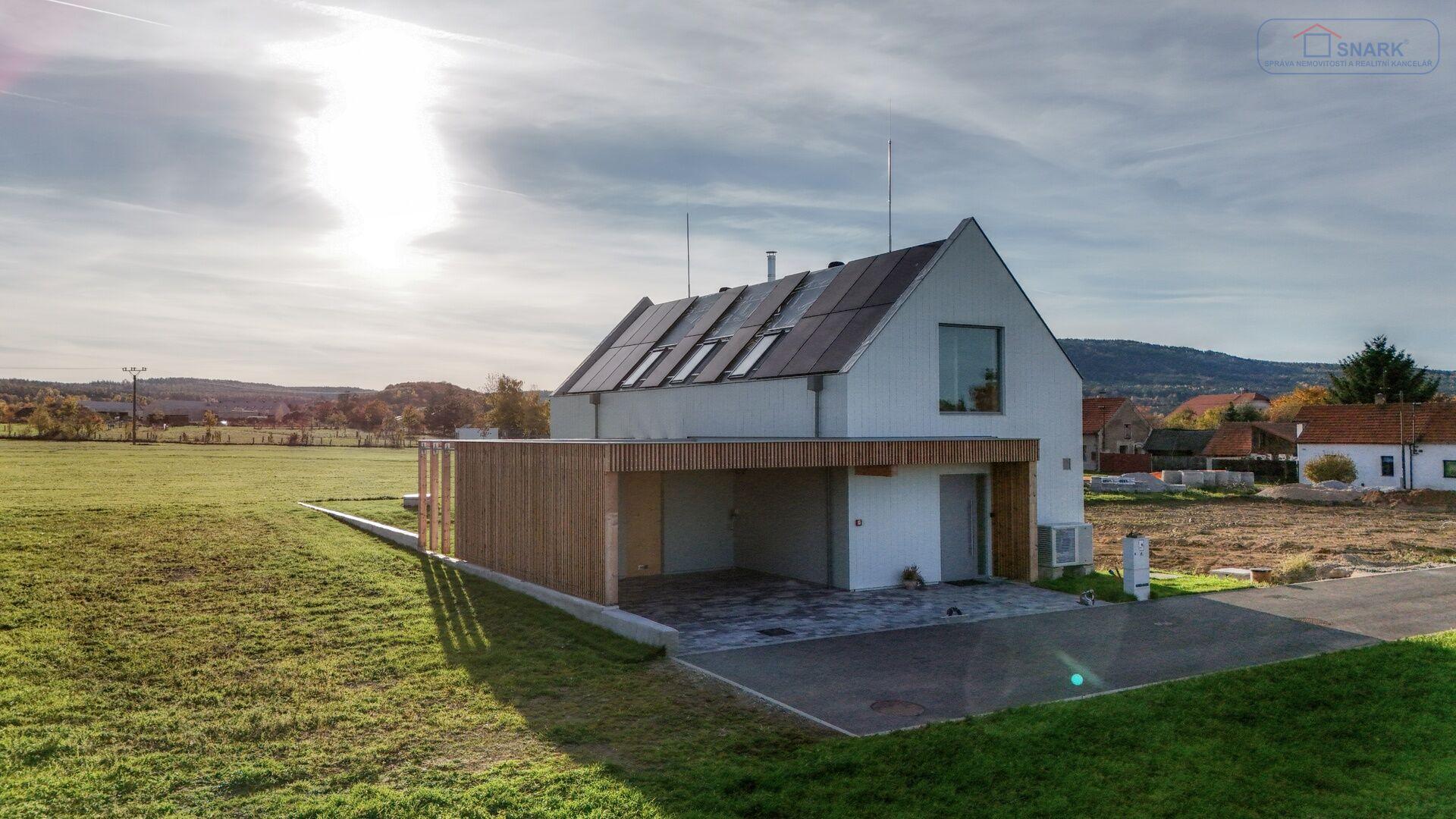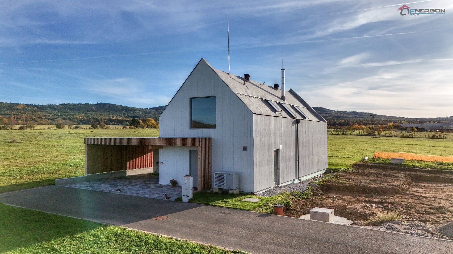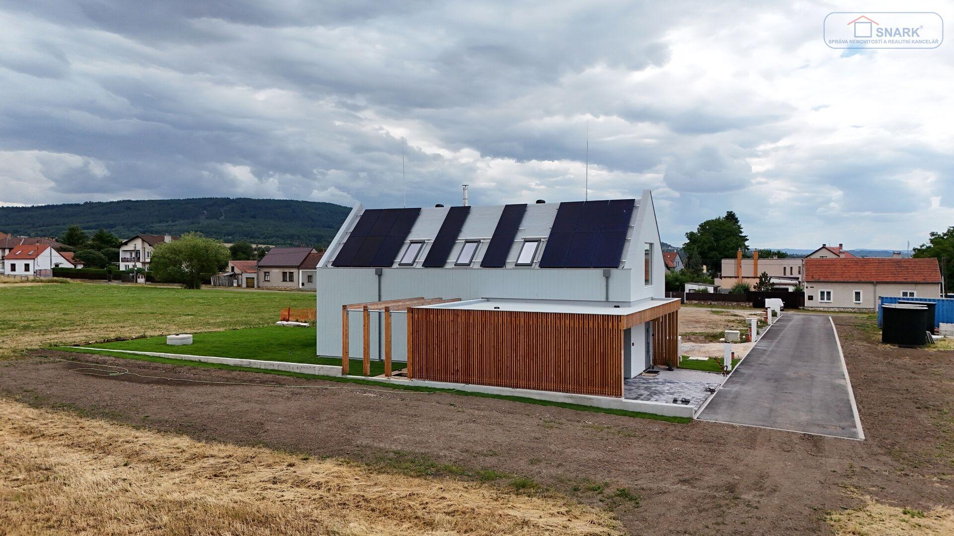 Nadstandardní nízkoenergetický dům v Hostomicích – výjimečný prostor, příroda a kvalita Nabízíme vám výjimečnou novostavbu rodinného domu v klidné části Hostomic – v lokalitě Dubinská, na kraji obce a zároveň v těsném kontaktu s přírodou. Dům je součástí projektu čtyř nízkoenergetických domů, který realizujeme jako místní rodinná firma vlastními silami. Dům jsme stavěli s vědomím, že budeme sousedé, a proto jsme si nemohli dovolit žádné kompromisy v kvalitě. Na rozdíl od běžných developerských projektů pro nás vztah se zákazníkem nekončí podpisem smlouvy. Tato dvoupodlažní dřevostavba je postavena z masivních CLT panelů – žádné OSB, ale poctivé pohledové dřevo v interiéru. Izolace je z přírodního dřevovlákna, fasáda provětrávaná, bez použití polystyrenu. Výsledkem je nízkoenergetický dům v energetické třídě A s velmi nízkými provozními náklady. Technologické vybavení domu mj. zahrnuje: • fotovoltaiku Victron 8 kWp s baterií 14 kWh, • tepelné invertorové čerpadlo vzduch–voda pro vytápění i chlazení, • inteligentní elektroinstalaci a řízení domu Loxone. Dům je skoro k nastěhování – dokončený ve fázi Shell & Core, tedy plně funkční a připravený k individuálnímu dokončení dle vašich preferencí a stylu (podlahy, vnitřní dveře, koupelny, kuchyně atd.). Díky velkým proskleným plochám a posuvným portálům se dům přirozeně otevírá do zahrady, která plynule přechází do okolní přírody. Dvě prostorné terasy nabízejí ideální prostor pro relaxaci, grilování nebo ranní kávu s výhledem do zeleně. Součástí pozemku je i krytý přístřešek pro dvě auta s přípravou na nabíječku pro elektromobil s integrovanou kolnou na zahradní nářadí. Hostomice nabízejí kompletní občanskou vybavenost – základní a mateřskou školu, lékaře pro děti i dospělé, lékárnu, potraviny, čerpací stanici, místní pivovar i další služby. Obec je výborně dopravně dostupná – leží mezi dálnicemi D5 a D4 s ideální dojezdovou vzdáleností do Prahy, Plzně, Berouna, Hořovic, Příbrami nebo Dobříše. Zaujalo vás toto kvalitní bydlení, kde se snoubí architektura, technologie a vztah k přírodě? Fotkami ani textem však nelze plně vystihnout atmosféra tohoto místa – je potřeba přijet, nadechnout se vůně dřeva a nechat se domem pohltit. Ozvěte se nám – rádi vás provedeme osobně a zodpovíme veškeré dotazy. O každém detailu víme vše – každý šroubek prošel našima rukama. Těšíme se na vaši návštěvu