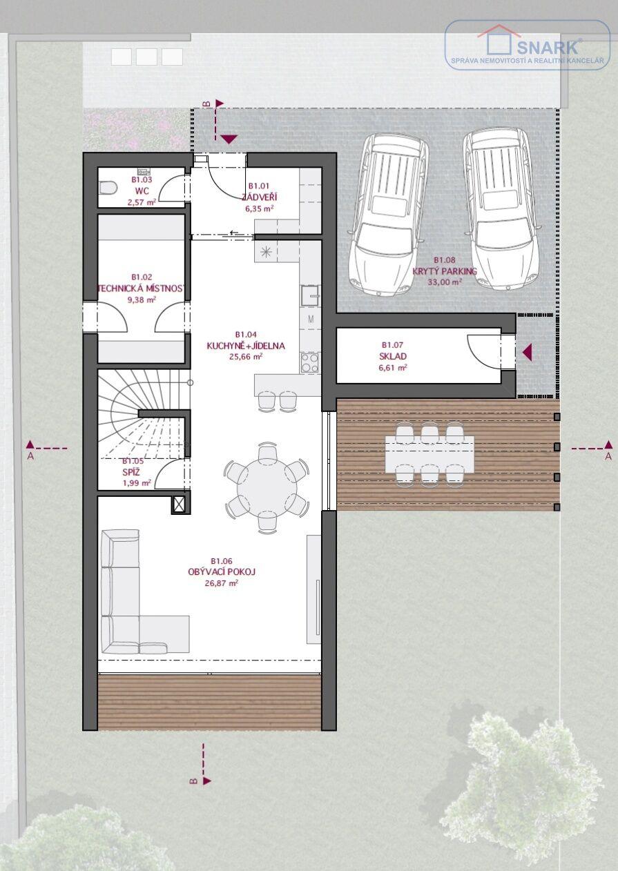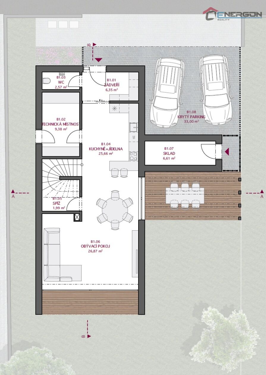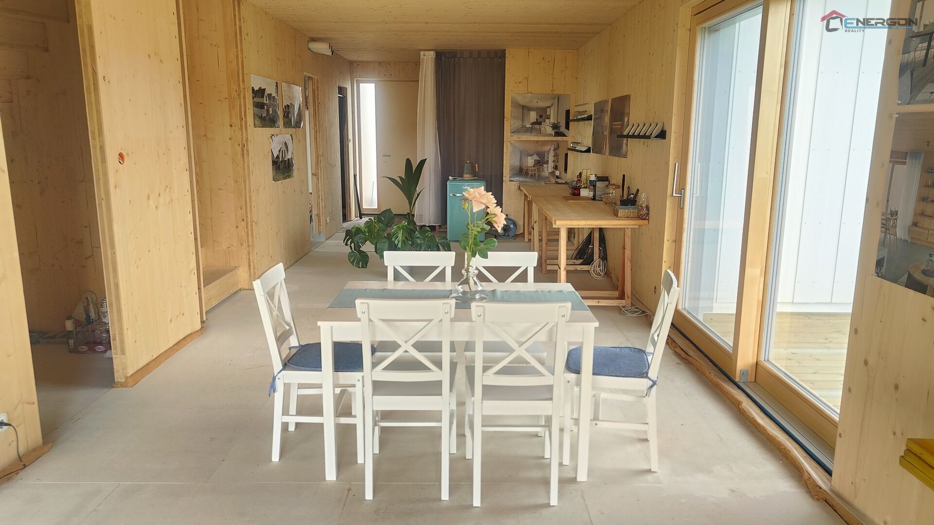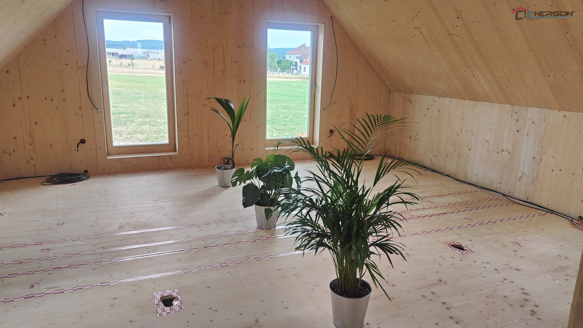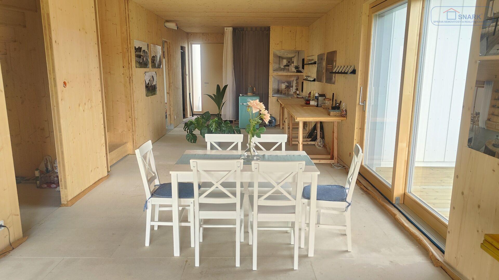 Nadstandardní nízkoenergetický dům v Hostomicích – výjimečný prostor, příroda a kvalita Nabízíme vám výjimečnou novostavbu rodinného domu v klidné části Hostomic – v lokalitě Dubinská, na kraji obce a zároveň v těsném kontaktu s přírodou. Dům je součástí projektu čtyř nízkoenergetických domů, který realizujeme jako místní rodinná firma vlastními silami. Dům jsme stavěli s vědomím, že budeme sousedé, a proto jsme si nemohli dovolit žádné kompromisy v kvalitě. Na rozdíl od běžných developerských projektů pro nás vztah se zákazníkem nekončí podpisem smlouvy. Tato dvoupodlažní dřevostavba je postavena z masivních CLT panelů – žádné OSB, ale poctivé pohledové dřevo v interiéru. Izolace je z přírodního dřevovlákna, fasáda provětrávaná, bez použití polystyrenu. Výsledkem je nízkoenergetický dům v energetické třídě A s velmi nízkými provozními náklady. Technologické vybavení domu mj. zahrnuje: • fotovoltaiku Victron 8 kWp s baterií 14 kWh, • tepelné invertorové čerpadlo vzduch–voda pro vytápění i chlazení, • inteligentní elektroinstalaci a řízení domu Loxone. Dům je skoro k nastěhování – dokončený ve fázi Shell & Core, tedy plně funkční a připravený k individuálnímu dokončení dle vašich preferencí a stylu (podlahy, vnitřní dveře, koupelny, kuchyně atd.). Díky velkým proskleným plochám a posuvným portálům se dům přirozeně otevírá do zahrady, která plynule přechází do okolní přírody. Dvě prostorné terasy nabízejí ideální prostor pro relaxaci, grilování nebo ranní kávu s výhledem do zeleně. Součástí pozemku je i krytý přístřešek pro dvě auta s přípravou na nabíječku pro elektromobil s integrovanou kolnou na zahradní nářadí. Hostomice nabízejí kompletní občanskou vybavenost – základní a mateřskou školu, lékaře pro děti i dospělé, lékárnu, potraviny, čerpací stanici, místní pivovar i další služby. Obec je výborně dopravně dostupná – leží mezi dálnicemi D5 a D4 s ideální dojezdovou vzdáleností do Prahy, Plzně, Berouna, Hořovic, Příbrami nebo Dobříše. Zaujalo vás toto kvalitní bydlení, kde se snoubí architektura, technologie a vztah k přírodě? Fotkami ani textem však nelze plně vystihnout atmosféra tohoto místa – je potřeba přijet, nadechnout se vůně dřeva a nechat se domem pohltit. Ozvěte se nám – rádi vás provedeme osobně a zodpovíme veškeré dotazy. O každém detailu víme vše – každý šroubek prošel našima rukama. Těšíme se na vaši návštěvu