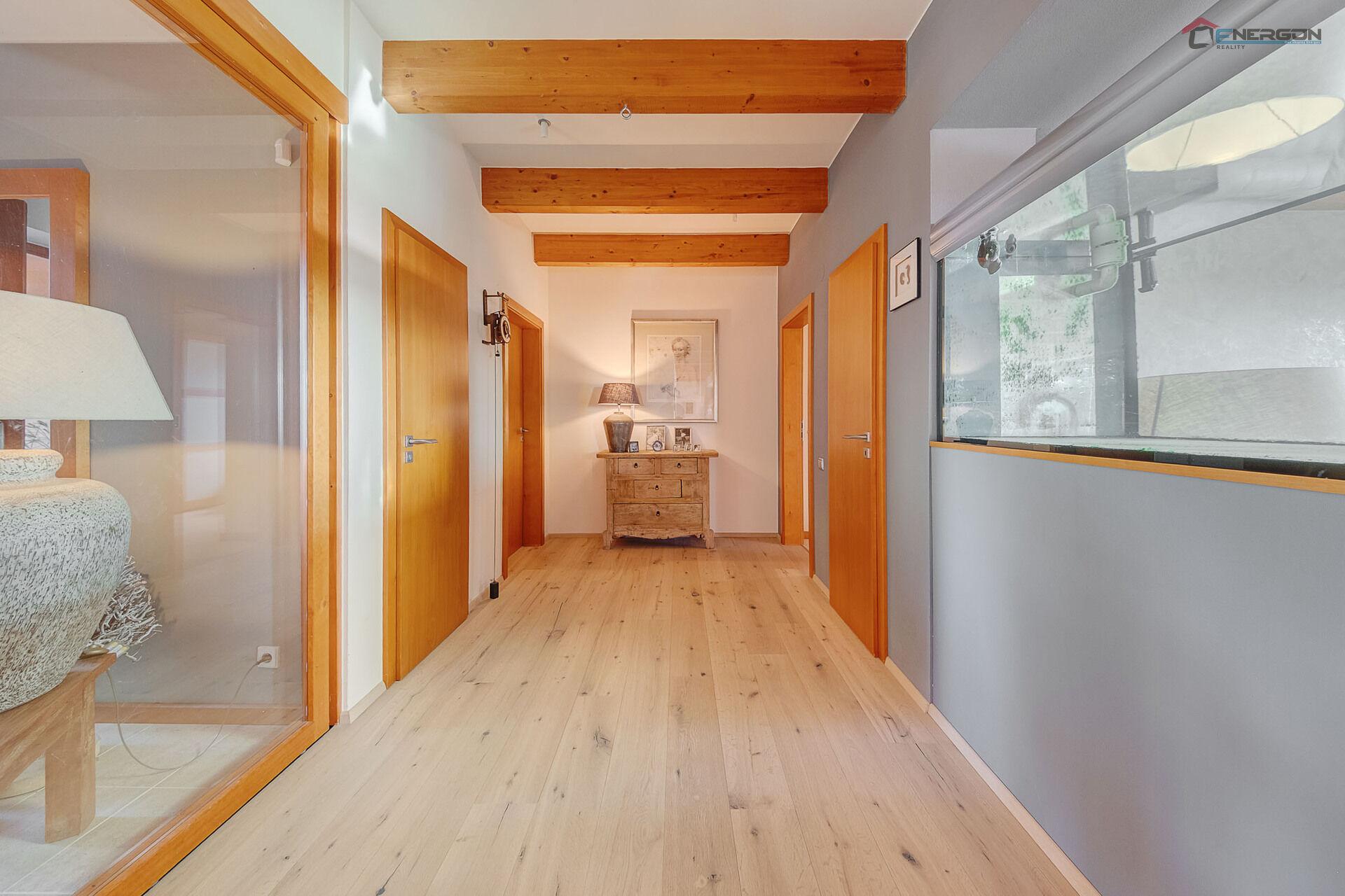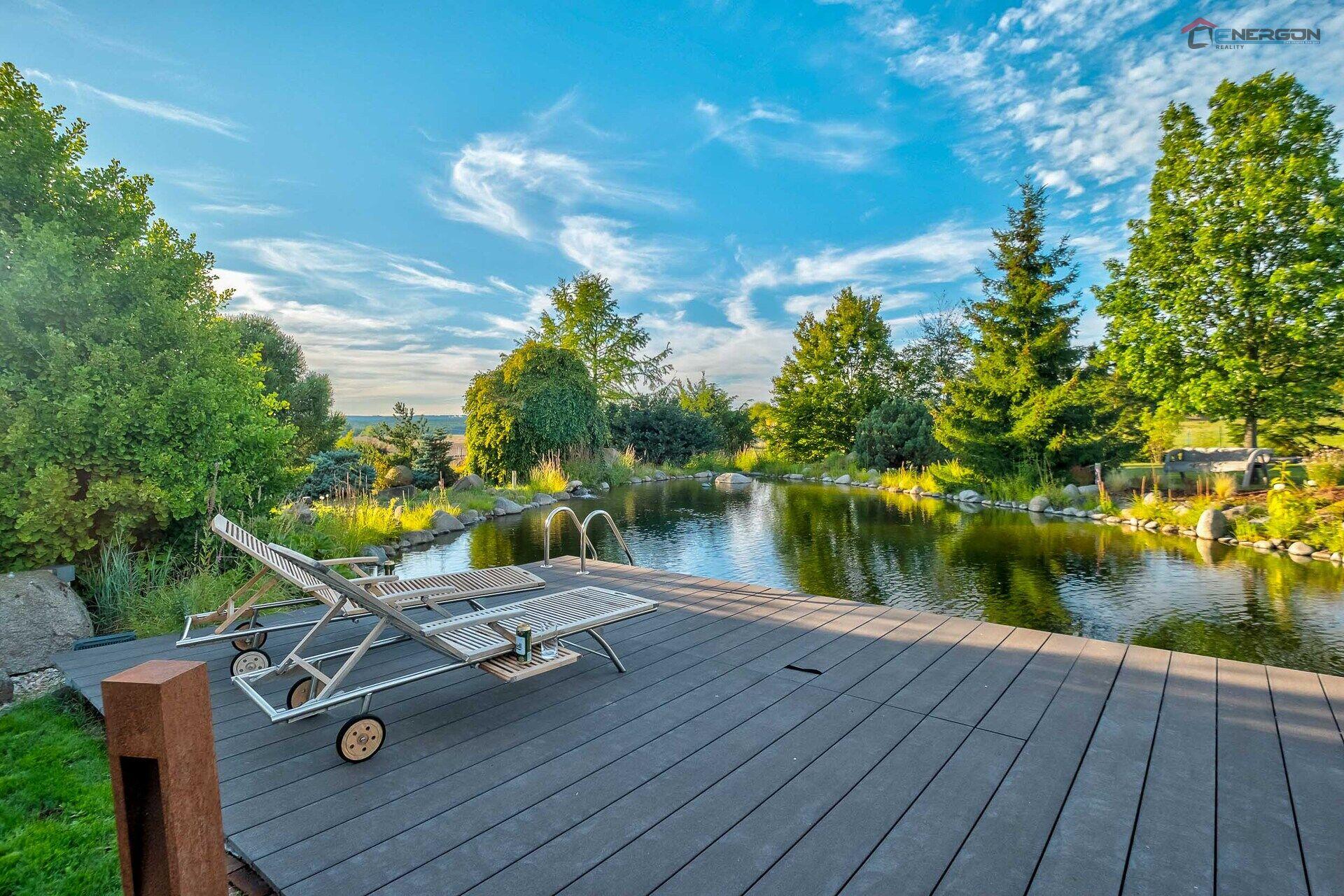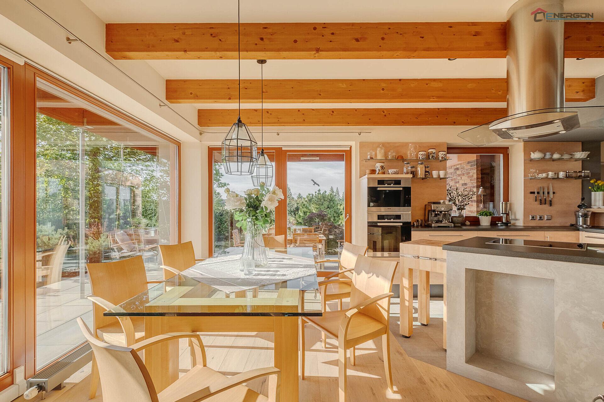 Nabízíme k prodeji velkoryse řešený rodinný dům s jedinečnou atmosférou a úžasným výhledem do krajiny. Jedná se o přízemní bungalov s dispozicí 5+KK a užitnou plochou 267m2. Součástí domu je dvojgaráž a veliká terasa. Dále tu je zahrada plná vzrostlých stromů a keřů, veliké koupací jezírko, nová moderní venkovní sauna. To vše na pozemku celkem 6.957m2. Srdcem domu je veliký obývací pokoj spojený s jídelním a kuchyňským koutem. Dostatek světla zajišťují velkoformátová okna směřující na jihozápad, poskytují uklidňující pohled do překrásné zahrady i ničím nerušený výhled v úhlu 180 ° na brdské lesy. Pocit prostoru a vzdušnosti dodávají také některé prosklené dveře. Součástí obývacího pokoje je velké akvárium. I když jste uvnitř domu, cítíte se spojeni se zahradou a okolní, krásnou přírodou. Dům je velmi prakticky řešený. Byl navržen tak, aby obsahoval křídlo rodičů – ložnice, šatna, koupelna, pracovna. A křídlo dětí – dva dětské pokoje, koupelna, dostatek prostoru pro šatní skříně ve spojovací chodbě. Obě křídla se spojují v obývacím pokoji u velkého rodinného stolu. K obývacímu pokoji přiléhá WC pro hosty, velká komora a technická místnost. Plus malá místnost jako technické zázemí akvária. Všechny části domu jsou promyšleně a prakticky rozdělené, přesto tvoří velmi příjemně propojený celek. Dispozice vnitřních prostor a stejně tak styl vybavení na Vás dýchne jedinečnou atmosférou. • rozloha pozemku je celkem 6.957 m2 • vzrostlé okrasné stromy a keře • tří jezírka propojená potokem, největší z nich je koupací s velkým dřevěným molem • venkovní gril, venkovní ohniště a venkovní sprcha • moderní venkovní sauna citlivě zasazená v zeleni • na pozemku je dostatek prostoru užít si klid, soukromí a relax • prostor pro budování dalších prvků, jako například zahradní altánek, dětské hřiště, kurt apod. • součást domu je dvojgaráž plus možnost parkování pro další vozy na pozemku, tři brány umožňující vjezd na pozemek • potenciál pozemku – v budoucnu případná možnost rozdělit pozemek a získat tak prostor k vybudování dalšího rodinného domu Technologie domu zahrnuje mimo jiné: • tepelné čerpadlo IVT • fotovoltaika 7.360Wp + baterie 20,5 kWh (součástí prodeje je i projekt a všechny komponenty na rozšíření systému o dalších 14 panelů) • krb s rozvodem teplého vzduchu do vedlejších místnosti • podlahové topení v kuchyni a koupelně • dům je napojen na obecní vodovod a kanalizaci, nicméně má na pozemku vlastní studnu (na zalévání, doplňování vody do systému jezírek) a obrovskou nádrž na dešťovou vodu • zahradní závlaha • zabezpečovací systém domu je napojený na bezpečnostní agenturu • robotická sekačka Malá Hraštice je příjemná, čistá a laskavá obec s přibližně tisícovkou obyvatel. Je zde mateřská škola a první stupeň základní školy. Menší, ale moderní obchod s potravinami, restaurace, vyhlášená cukrárna. Za 15 minut se dostanete na Dobříš, za 5 min na dálnici D4 a následně jste do 20 minut v Praze. Malá Hraštice je skvělá základna pro milovníky turistiky a cyklistiky. Brdské lesy lákají k návštěvě v každém ročním období. Tento rodinný dům je opravdovým skvostem a může se stát Vaším novým domovem. Neváhejte nás kontaktovat pro bližší informace a prohlídku.